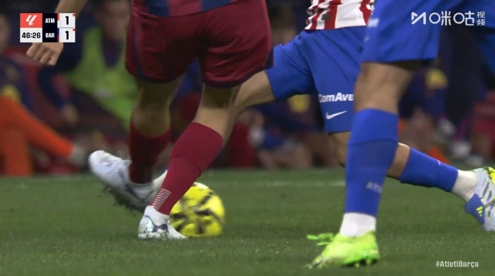 在巴萨2-1马竞的比赛中,马丁拼抢时蹬踏阿尔马达,主裁判一开始对其出示直红。回放显示,马丁解围先踢到皮球。VAR介入,主裁亲自观看回放后改判为黄牌!